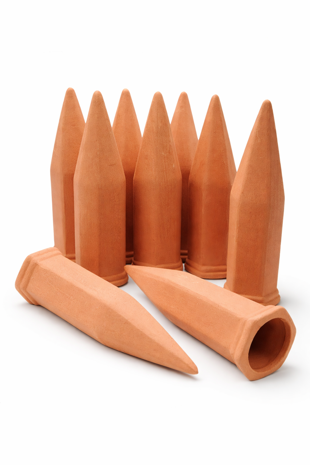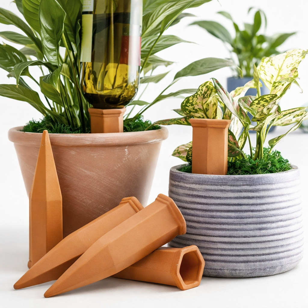 Their terracotta-style look blends naturally with pots and planters, while the pointed shape makes them easy to place into the soil. These watering stakes are a convenient choice for indoor plants, balcony planters, patio pots, and small outdoor containers. They can also be especially useful during busy weeks, short trips, or times when regular watering may be harder to keep up with.